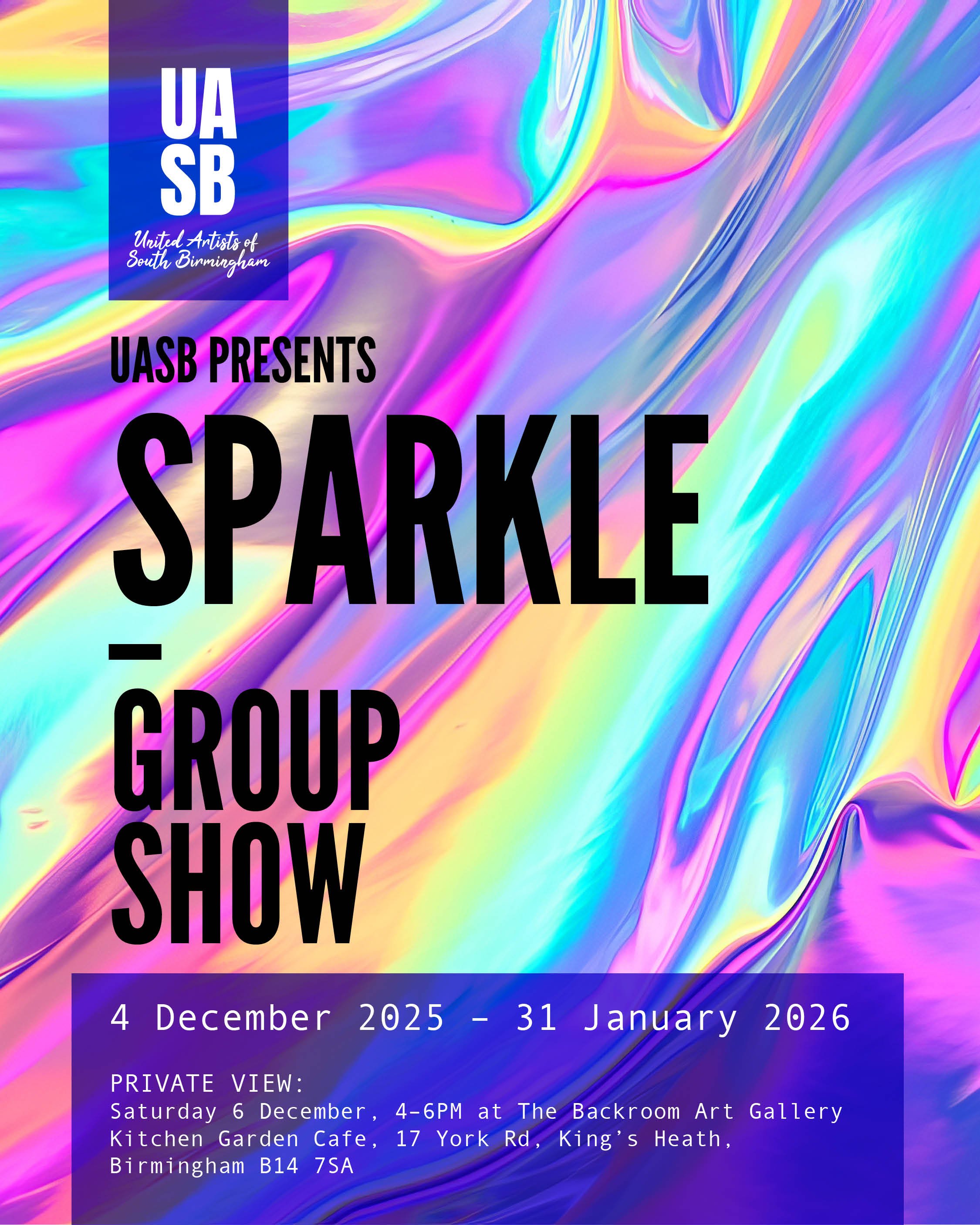 United Artists of South Birmingham invite members to submit work for our upcoming winter exhibition, SPARKLE — a celebration of light, reflection, and creative energy to close the year.